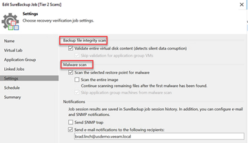 With that said, scanning backup files to assess their health and recoverability is crucial and something Gartner recommends as part of their Isolated Recovery Environment for backup vendors. Verifying backups to ensure no known vulnerabilities get re-injected into the production environment during restores can be a massive timesaver. Veeam can automagically do this with SureBackup. As the name implies, this enables users to verify backups are usable by both scanning the backup contents for malware/ransomware and checking the integrity of the backup via a CRC test. As a side note, you can use any scanning tool that has a CLI. For example, Trend Micro, Bitdefender, Windows Defender, etc. Simply edit the XML file here. I am using ESET.