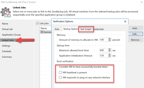 Linking SureBackup jobs with a daily backup policy means you can come into work not only with finished backups, but also backups that have been inspected. As you can see below, there are many other possibilities with SureBackup. This post is specifically leveraging the tool to scan backup contents, but you could also create a small DR test by ensuring VMs are connected to the network in a restore and inserting any custom scripts.